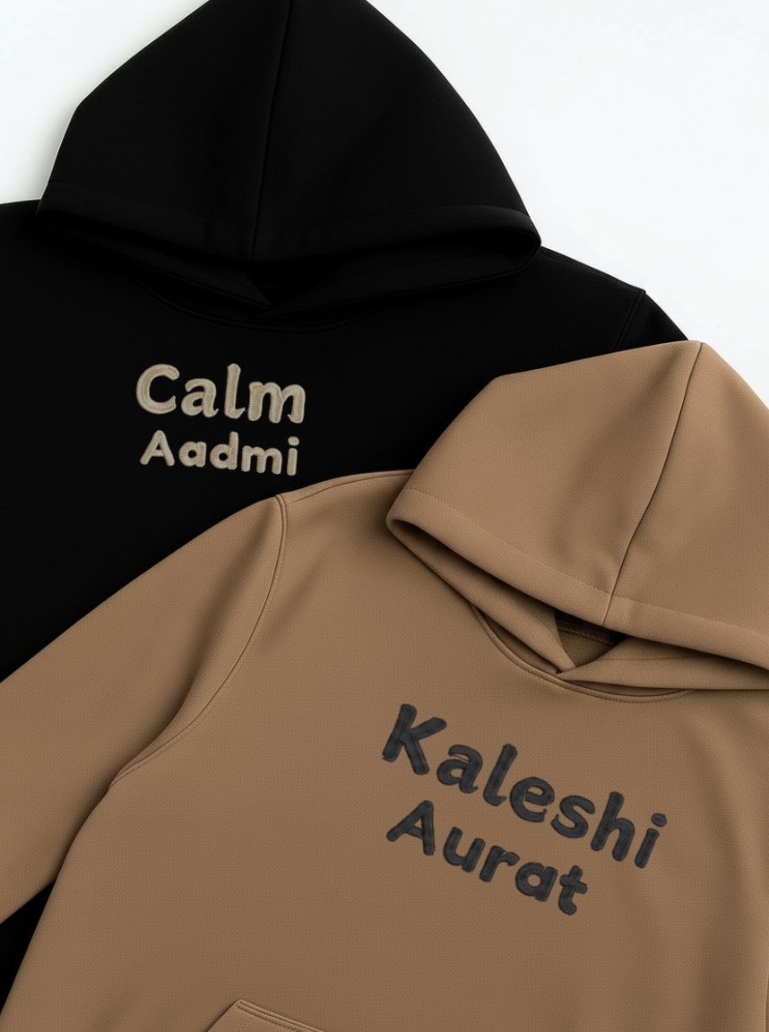 Calm Aadmi, Kaleshi Aurat Embroidered Hoodie & Sweatshirt Combo-EM-008